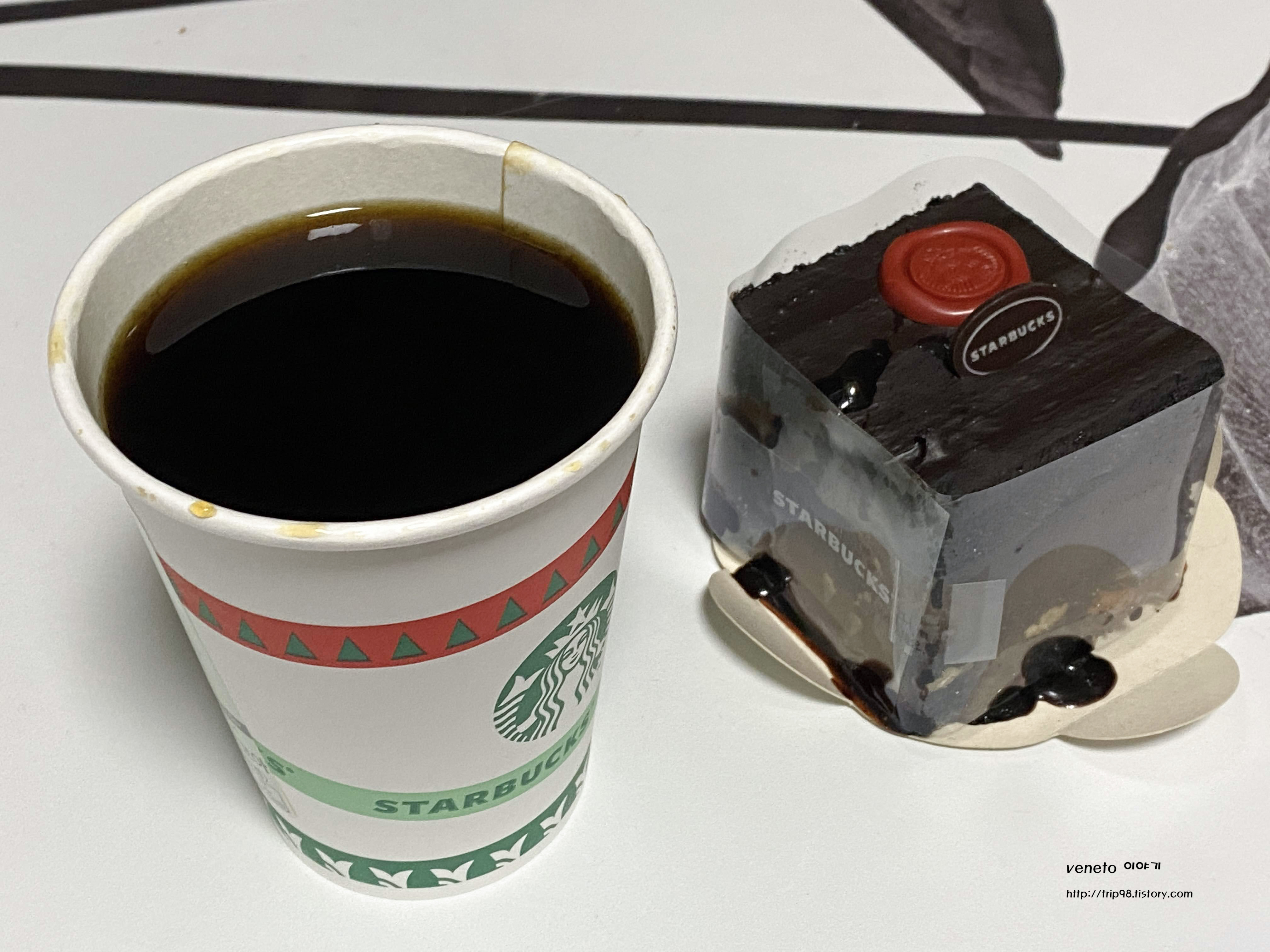 추운 겨울날 스타벅스 신메뉴로 크리스마스1 메뉴들이 출시되었습니다. 저번엔 음료를 먹어보았는데 이번엔 푸드 1종을 먹어보았습니다. 음료는 오늘의 커피와 함께.. 뭔가 이번에 먹을 블랙 초콜릿 케이크는 커피가 제일 잘 어울릴것 같았거든요.